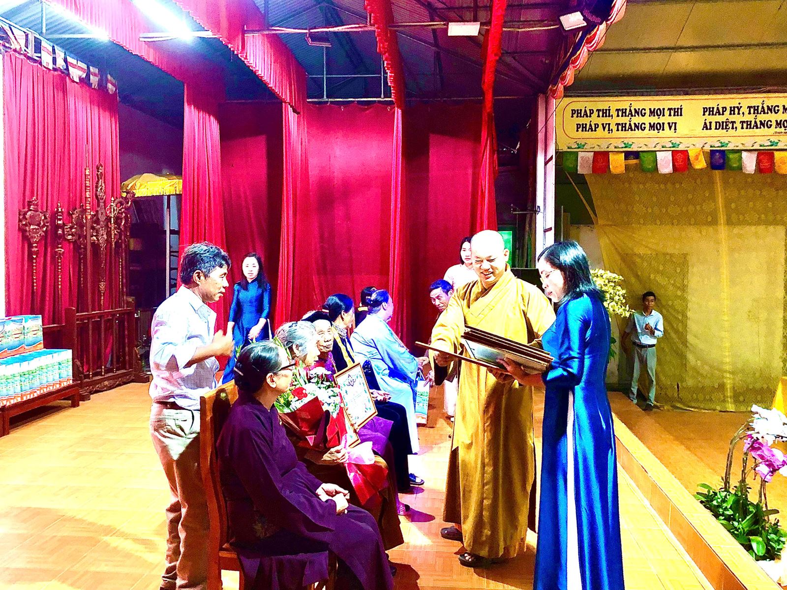 Thanh Quang đã trao bằng Chúc thọ và nhiều phần quà có giá trị cho các Phật tử